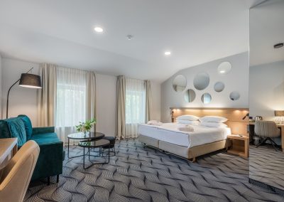 Subtiliai stilingas aukščiausios klasės kambarys, skirtas pailsėti visai šeimai.