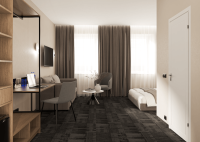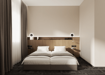 Naujai įrengtas, šiuolaikiškas dvivietis kambarys, kuriame rasite visko ko reikia kokybiškam poilsiui.